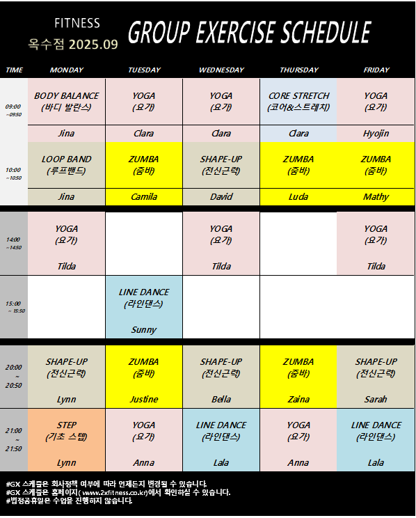 GX Schedule