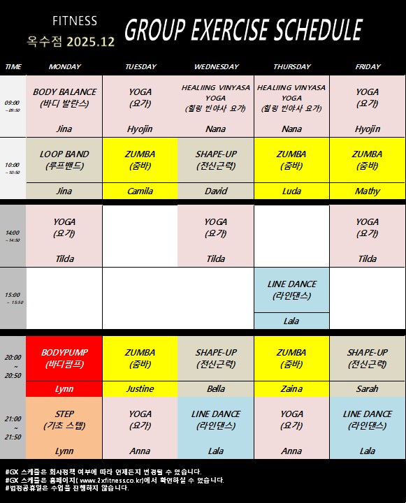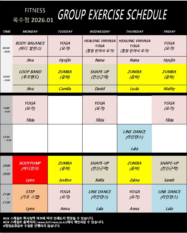 GX Schedule